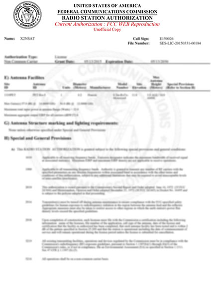 Certificat FCC pour l'Antenne de 6, 2 m