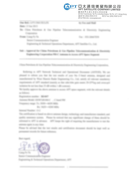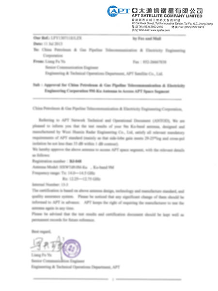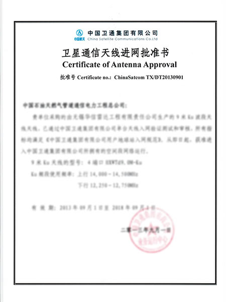 Certificat Chinasatcom d'approbation d'antenne de 9 m