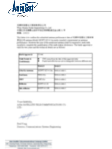 Approbation AsiaSat de l'antenne de 2,4 m