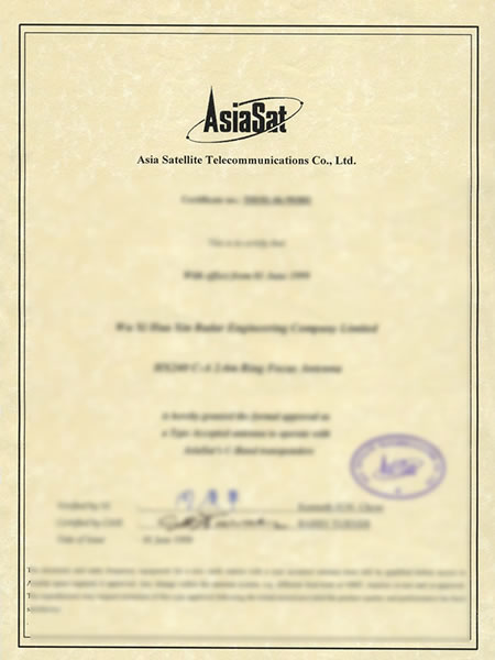 Approbation AsiaSat de l'antenne de 3,7 m