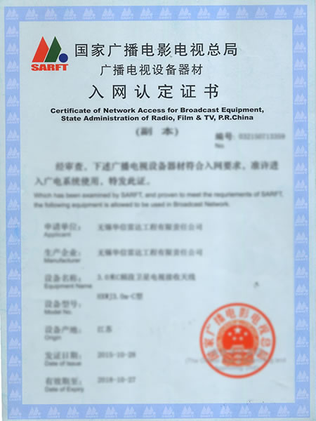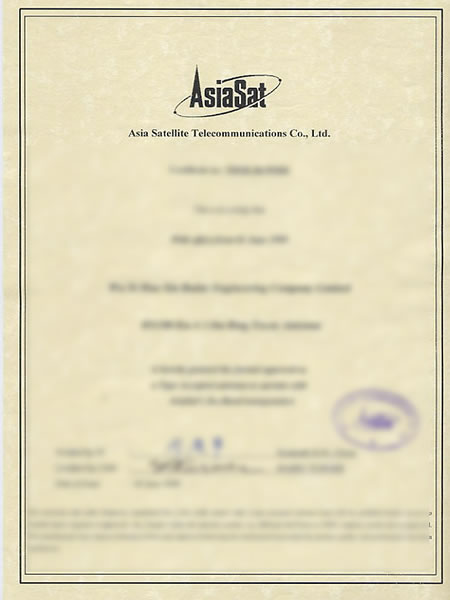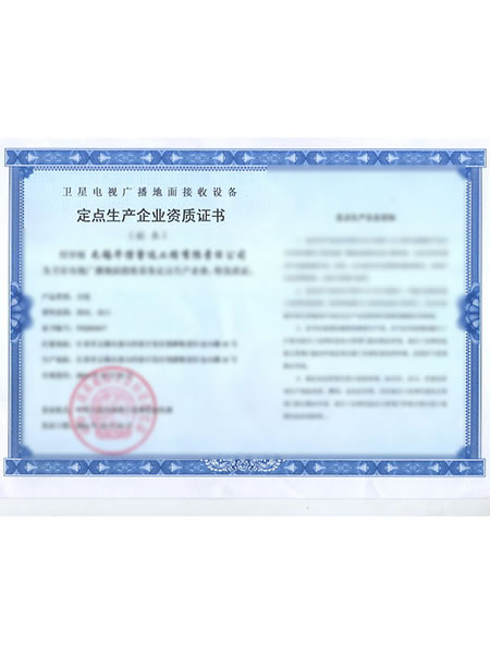 Certificat d'entreprise désignée de production d'équipement de réception de radiodiffusion de télévision de satellite